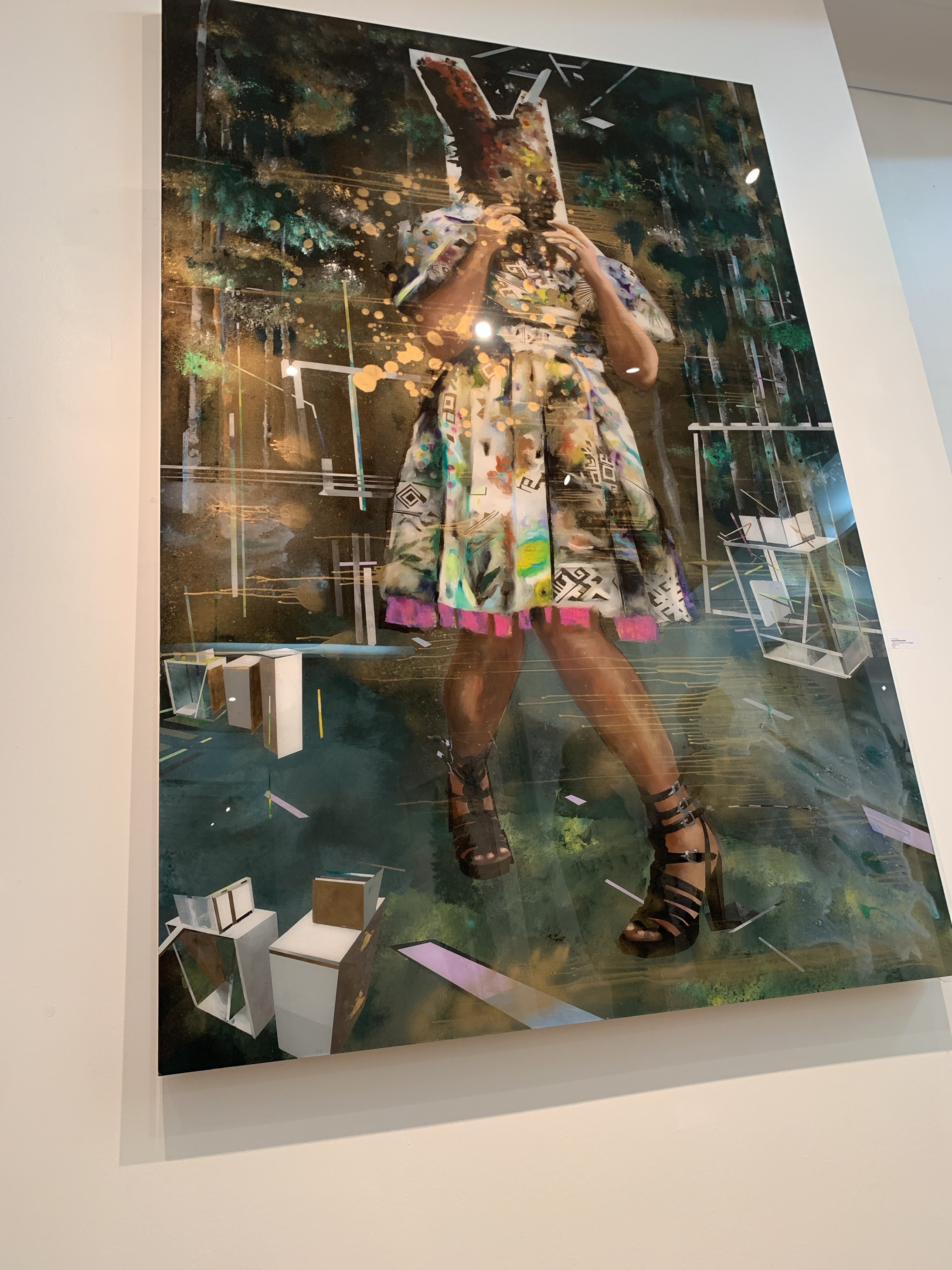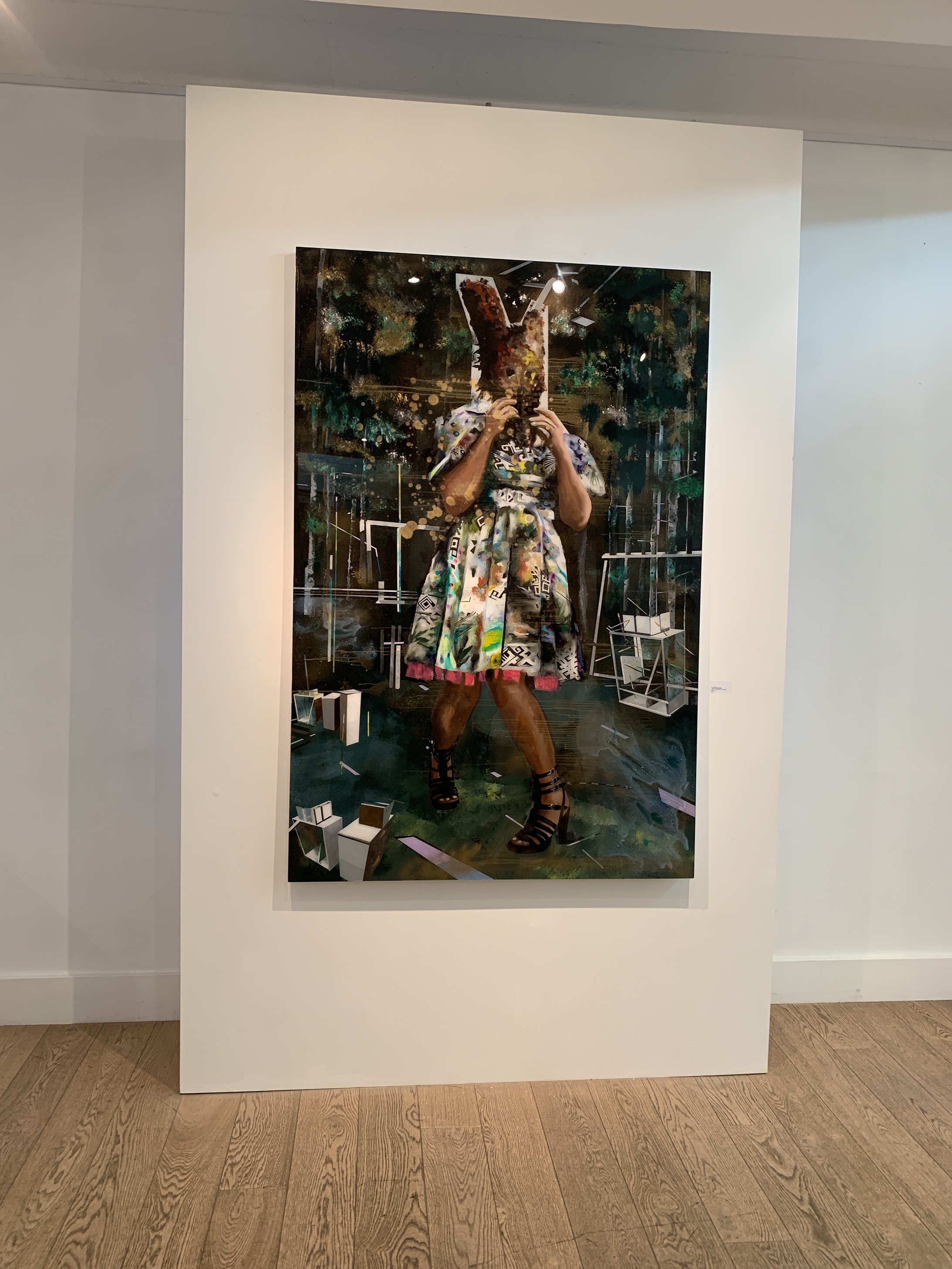 Cette fois ci dans l’espace whitecube de la Galerie Dx , Muriel Dolorosse qui s’adapte toujours à son espace d’exposition, présente des grand formats puissants.